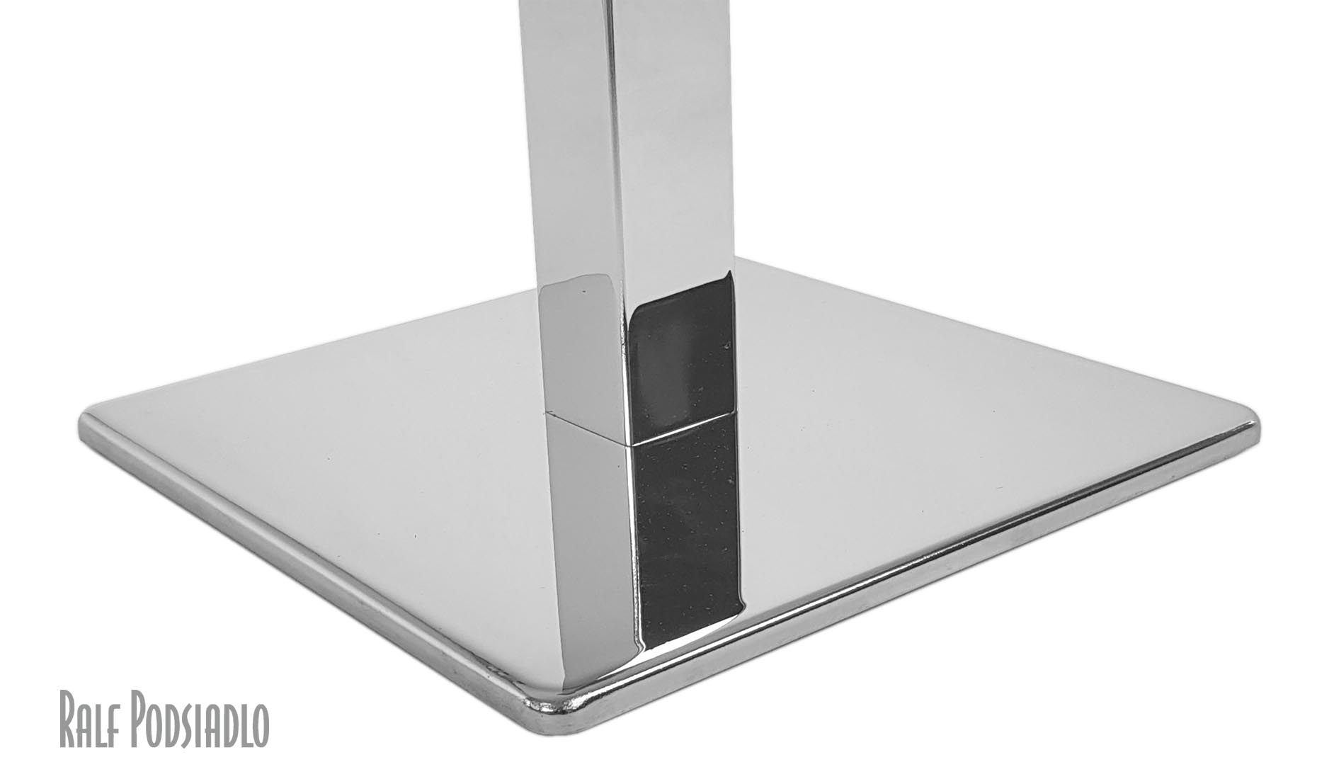 50x50mm, verchromt-blank, Edelstahl - geschliffen oder Edelstahl - poliert (nur bei der Bodenplatte aus Glas)