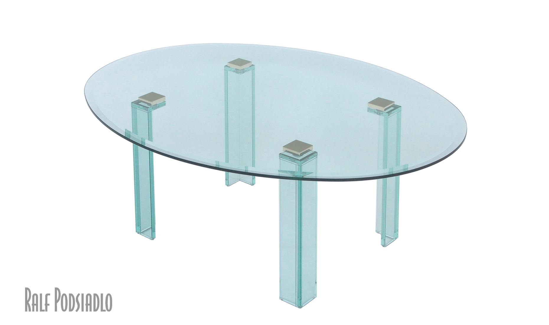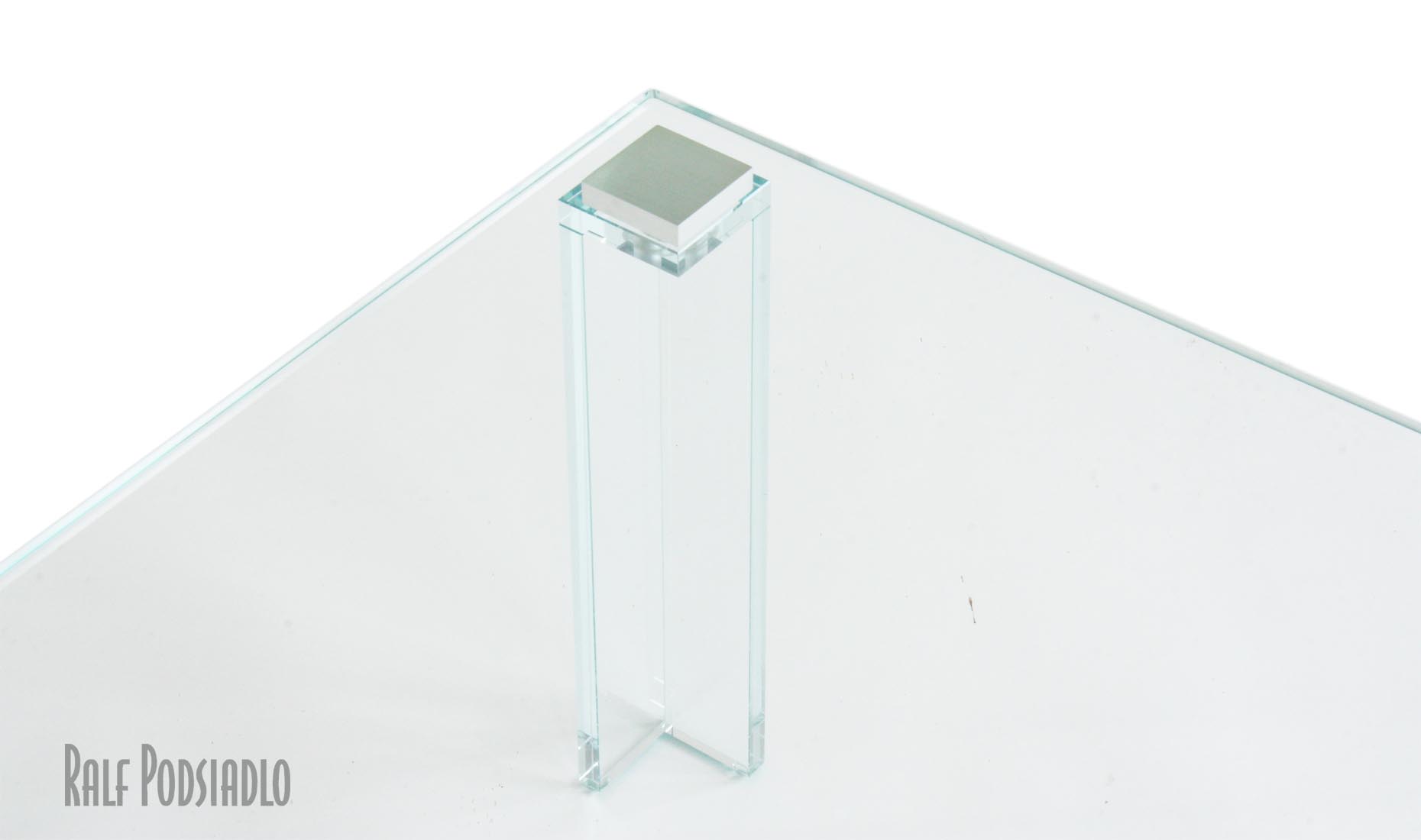 Bestseller seit 1996. Die Beine aus kleinen Glasteilen mit UV-Strahl härtendem Klebstoff verklebt - eine handwerkliche Hochleistung. Trotzt dieser "Zaubereien" wirkt der Tisch schlicht und dezent - und eignet sich sowohl für modern möblierte Räume als auch für Stil- und Antikmöbelumgebung - unglaublich, nicht wahr ?...