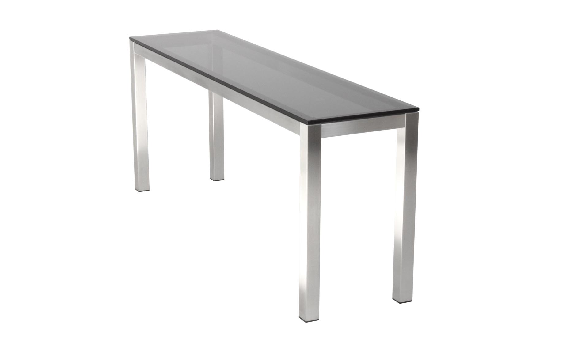 Das zeitlose, formreduzierte Designer-Gestell, das wegen seiner Stabilität von uns vor allen für Ess- und Schreibtische gebaut wird, kann montiert oder zerlegt geliefert werden. Wir bieten nicht nur jede machbare Maß an (auch als Konsolen, Anrichten usw.) sonder auch alle auf dem Markt erhältliche Glasplatten, die nach Wunsch einseitig lackiert werden können. Durch verzicht auf Verklebungstechnik, kann das Gestell als ein separates Möbel verwendet werden. Das massive Material - Edelstahl, und die verschraubte Konstruktion macht es sehr langlebig. Sie können nachträglich auf das Gesell beliebige Glas-, Stein- oder Holzplatte platzieren, das Gestell demontieren und „bürsten“ lassen oder sogar die Traversen bzw. Beine kürzen lassen um ein neues Möbel zu bauen.